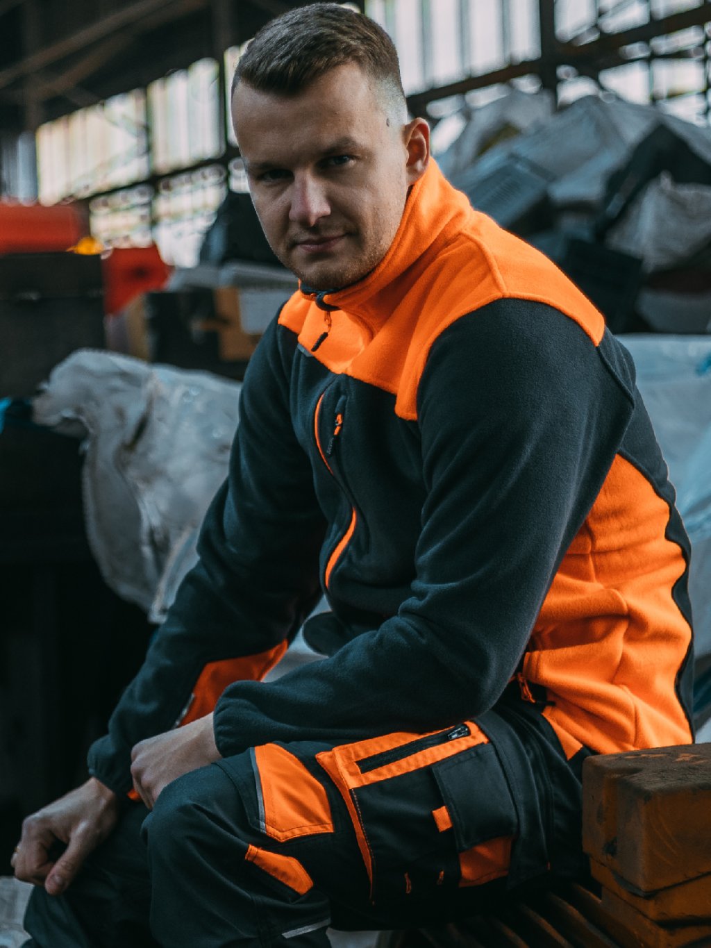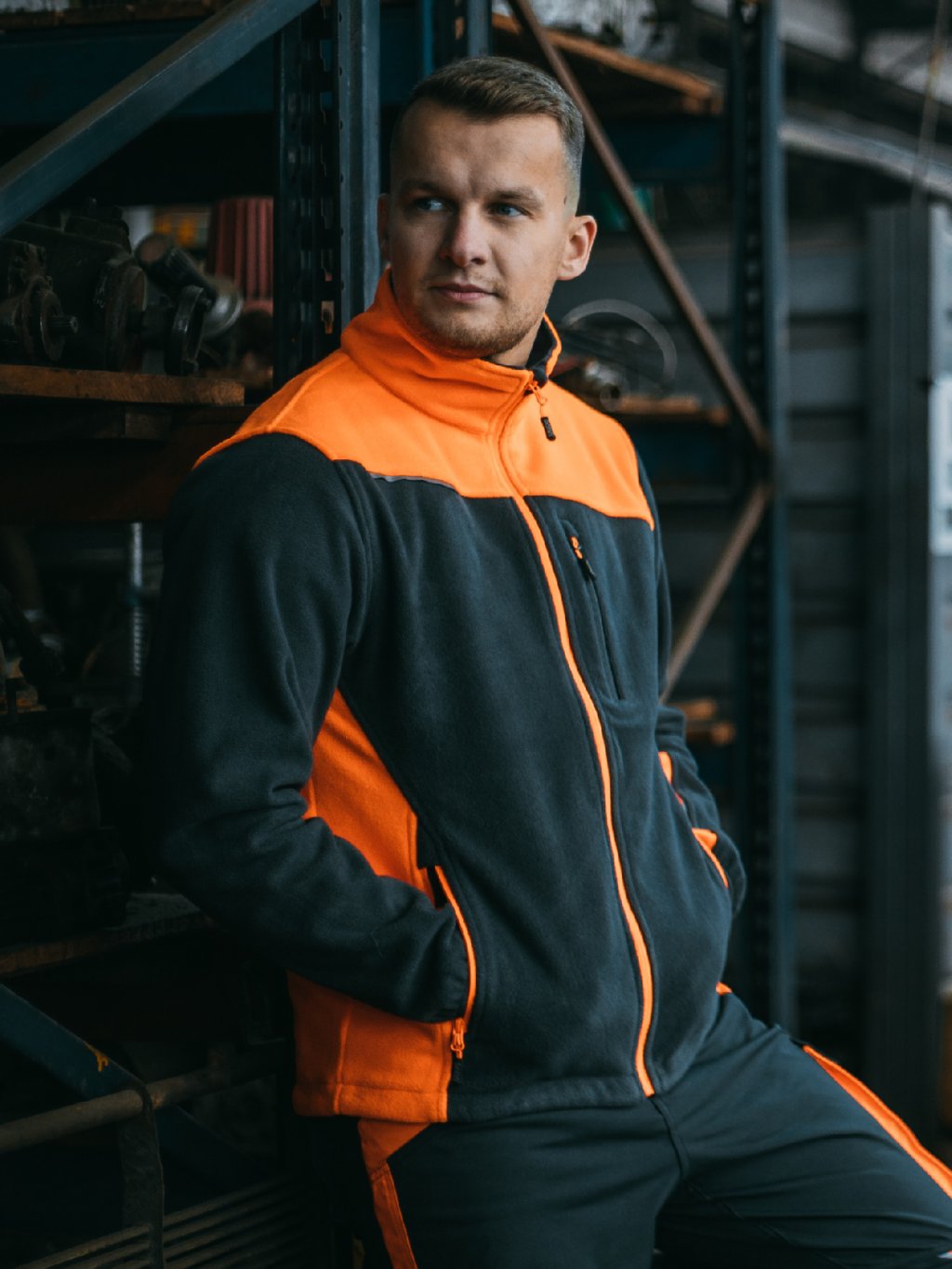 Příjemný fleecový materiál a pohodlný střih zajišťují komfort při celodenním nošení i při fyzické práci.