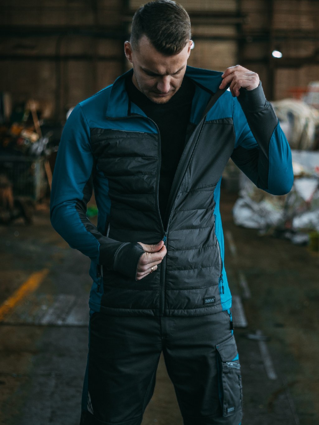 Prošívané zóny s izolací udržují teplo v citlivých částech těla, zatímco elastické manžety s otvorem na palec chrání proti pronikání chladu.