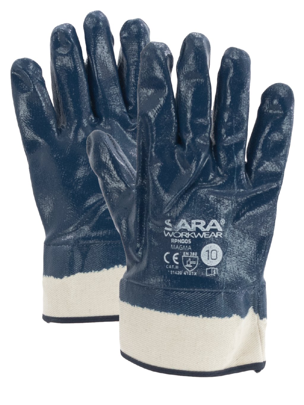 Pracovní rukavice vyrobené z polyesteru s celoplošným nitrilovým povrchem, který zajišťuje vysokou odolnost proti oděru, protržení a kontaktu s mastnými látkami.