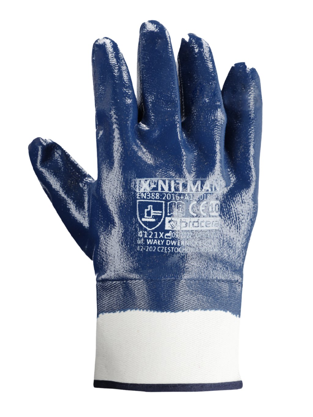 Pracovní rukavice z bavlněné pleteniny, celoplošně potažené nitrilem pro maximální ochranu proti olejům, tukům a mechanickému opotřebení.