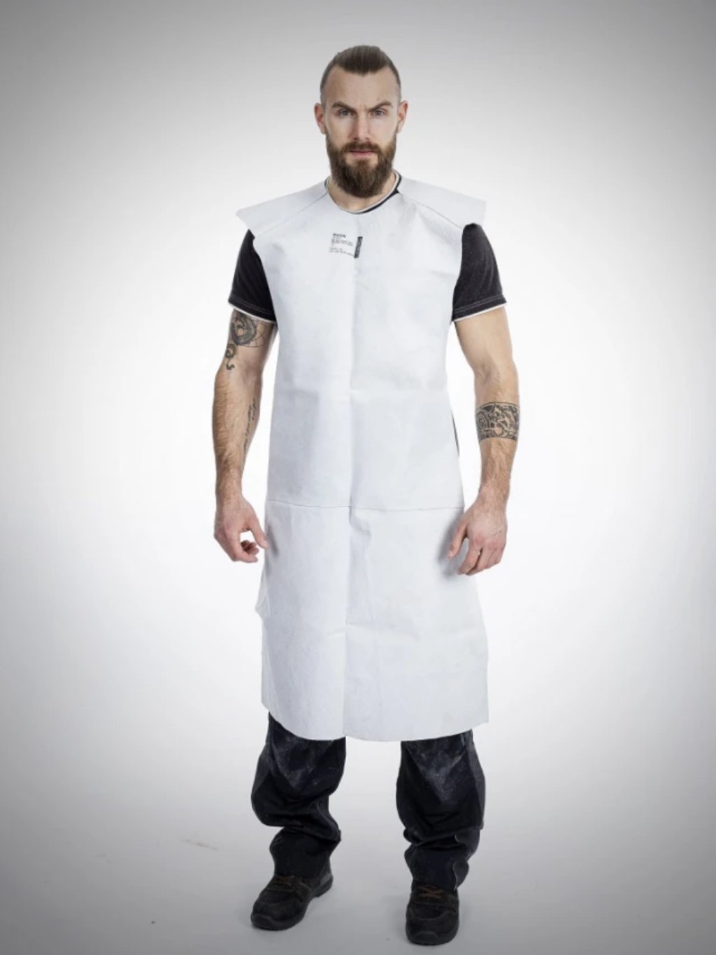Speciální střih zakrývá ramena a spolu s prodlouženou délkou pod kolena chrání velkou plochu těla při svařování.